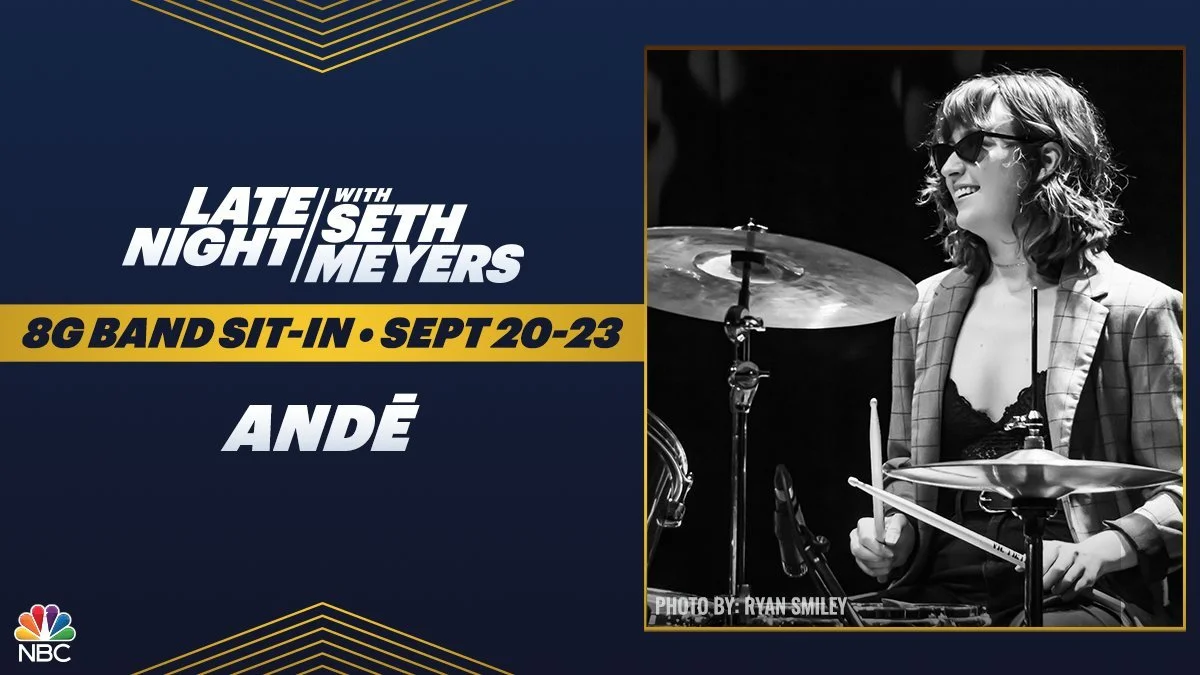 Andē guest drumming on Late Night with Seth Meyers 2022